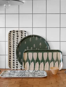このトレーを手がける Fine Little Day では、自然や日常の風景をモチーフにした、テキスタイルやテーブルウェアなどのアイテムも揃っています。