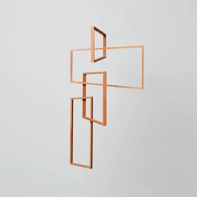 tempoのモビールは他にはない構造が特徴的で、見て楽しみ想像力をかきたてつようデザインされています。予測不能なユラユラとゆったりとした動きで空間を彩り、インテリアを豊かにしてくれます。わずかな空気の流れにも反応するのは、緻密に計算されたバランスにうよるもの。